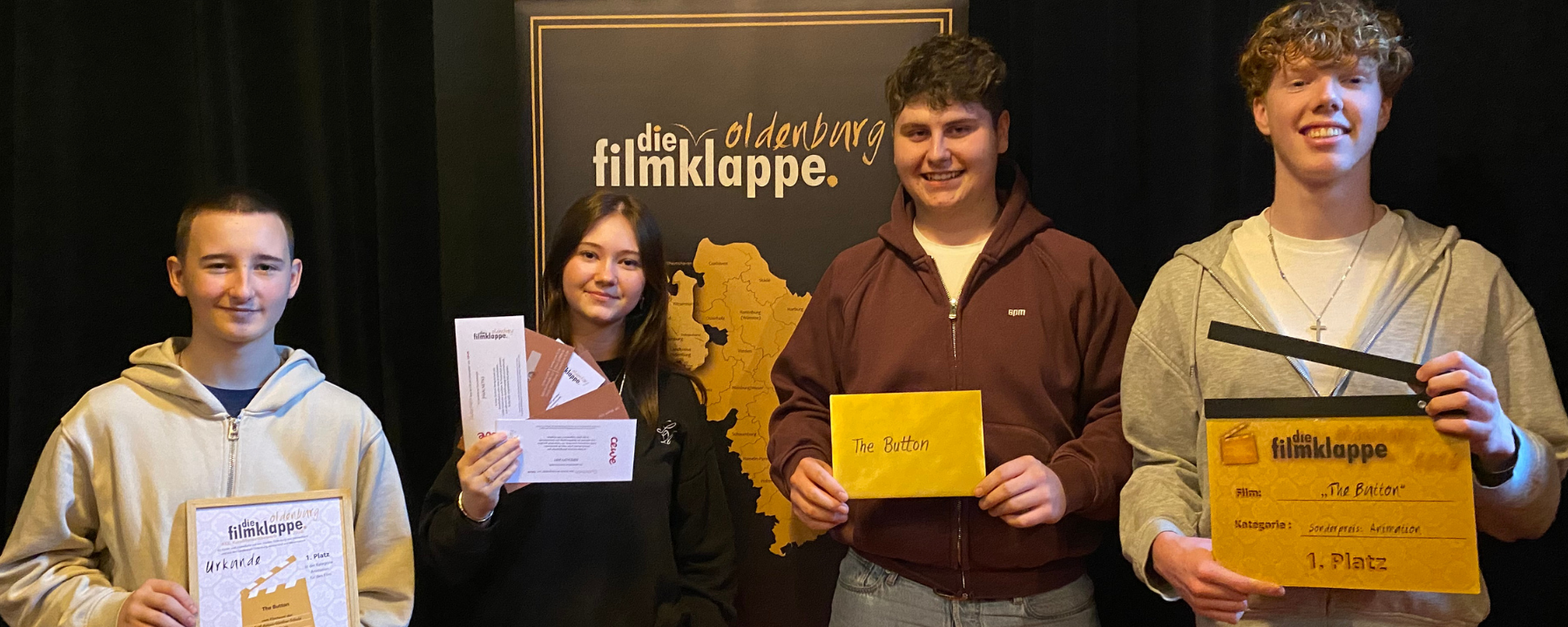 Tosenden Applaus für ihren Film „The Button“ erhielten unsere Schüler:innen Alisa, Marten, Tammo und Julius bei der Preisverleihung…