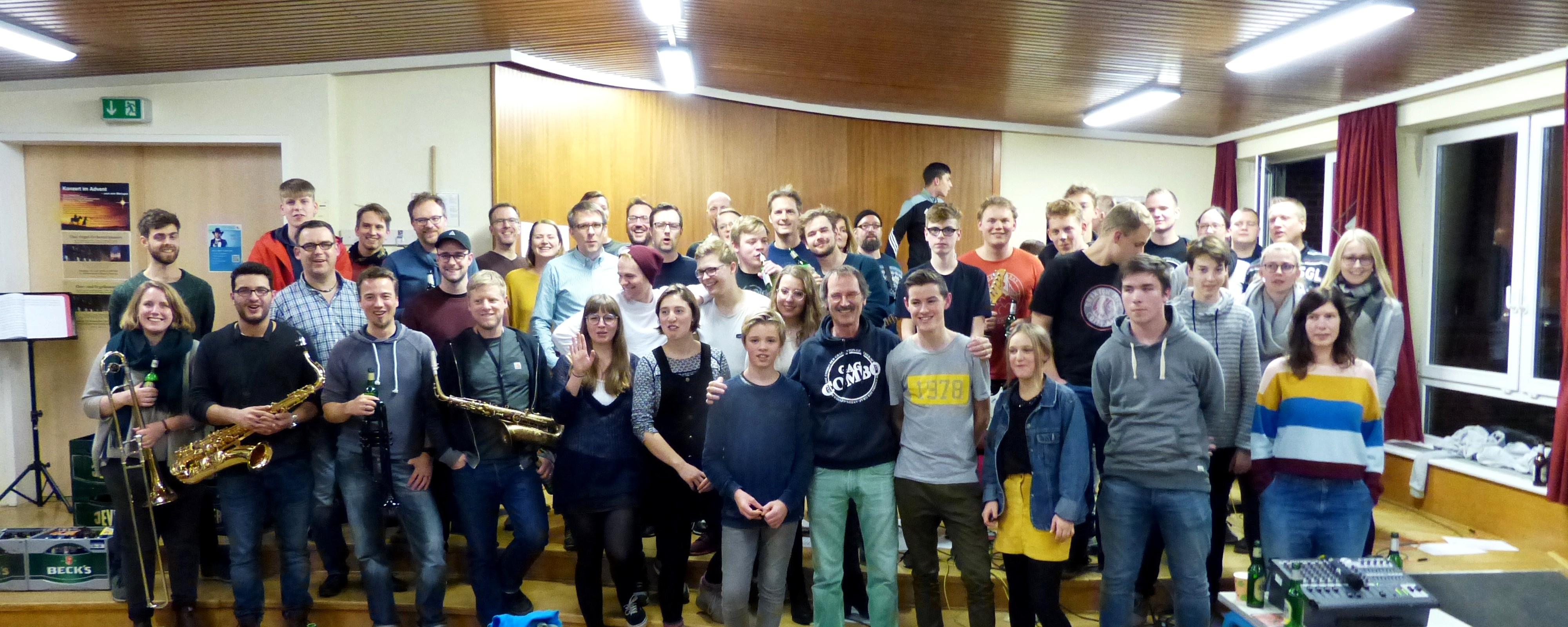 Diese hohe Identifikation mit einem der musikalischen Angebote der Schule zeigt sich schon daran, dass die inzwischen weit über 128 Musiker fast noch alle Kontakt zur Band halten. So erwarteten die jetzigen Combomusiker im Alter zwischen 13 und 18 Jahren ihre damaligen Vorgänger, die inzwischen ihre Mütter oder Väter sein könnten. Umso phantastischer war es, an diesem Abend die unterschiedlichsten Generationen zusammen ihre alten und neuen Songs gemeinsam spielen zu hören und sehen.