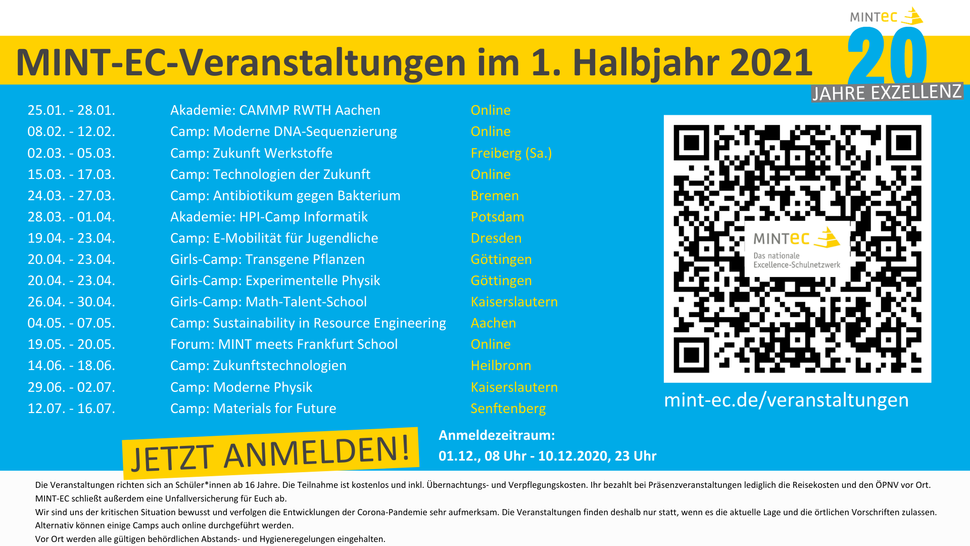 MINT-EC-Camps 1. Halbjahr 2021 Anmeldung 01.12. – 10.12.2020