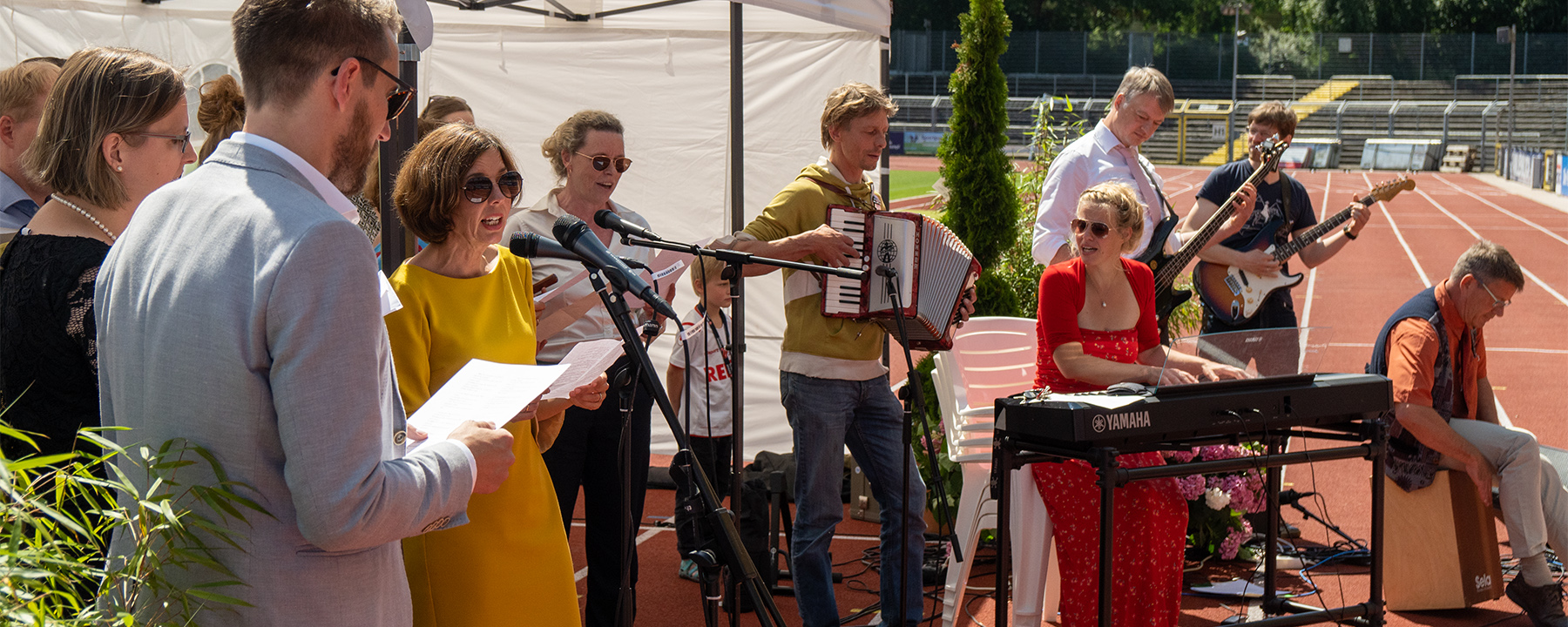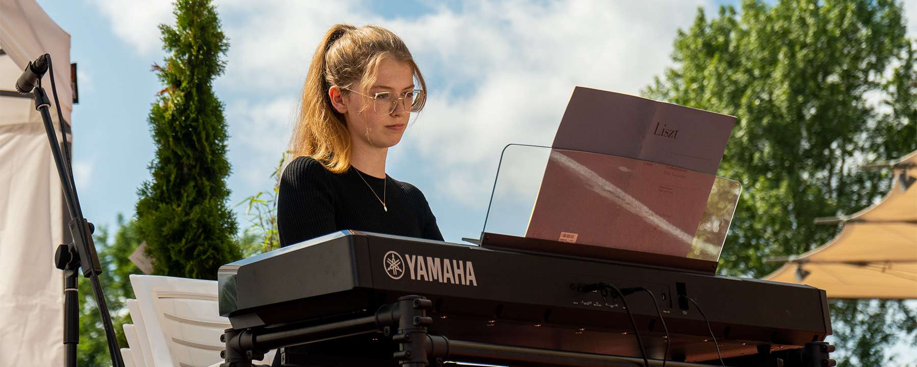 Musikalisch wurde die Feier von der Abiturientin Lotte von Seggern am Klavier untermalt. Den musikalischen, vielleicht auch humorvollen Abschluss bildete ein Lehrerchor, der von einem Haus am See am Ende einer Straße sang.