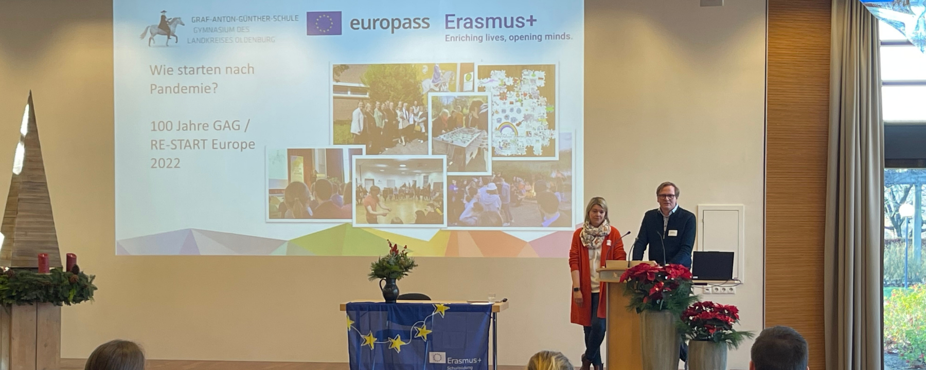 Im Rahmen zweier Europa-Aktionen konnte die GAG ihre Europaarbeit weiter stärken. Sowohl an der eigenen Schule als auch im Rahmen einer Fortbildung in der Katholischen Akademie Stapelfeld präsentierten Kolleginnen und Kollegen ihre Arbeit, entwickelten neue Projektideen und knüpften wertvolle Kontakte für die Zukunft.