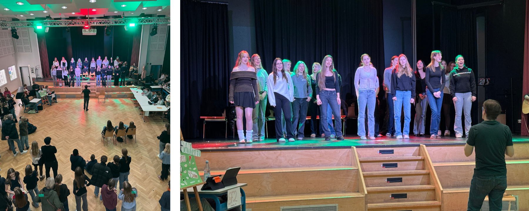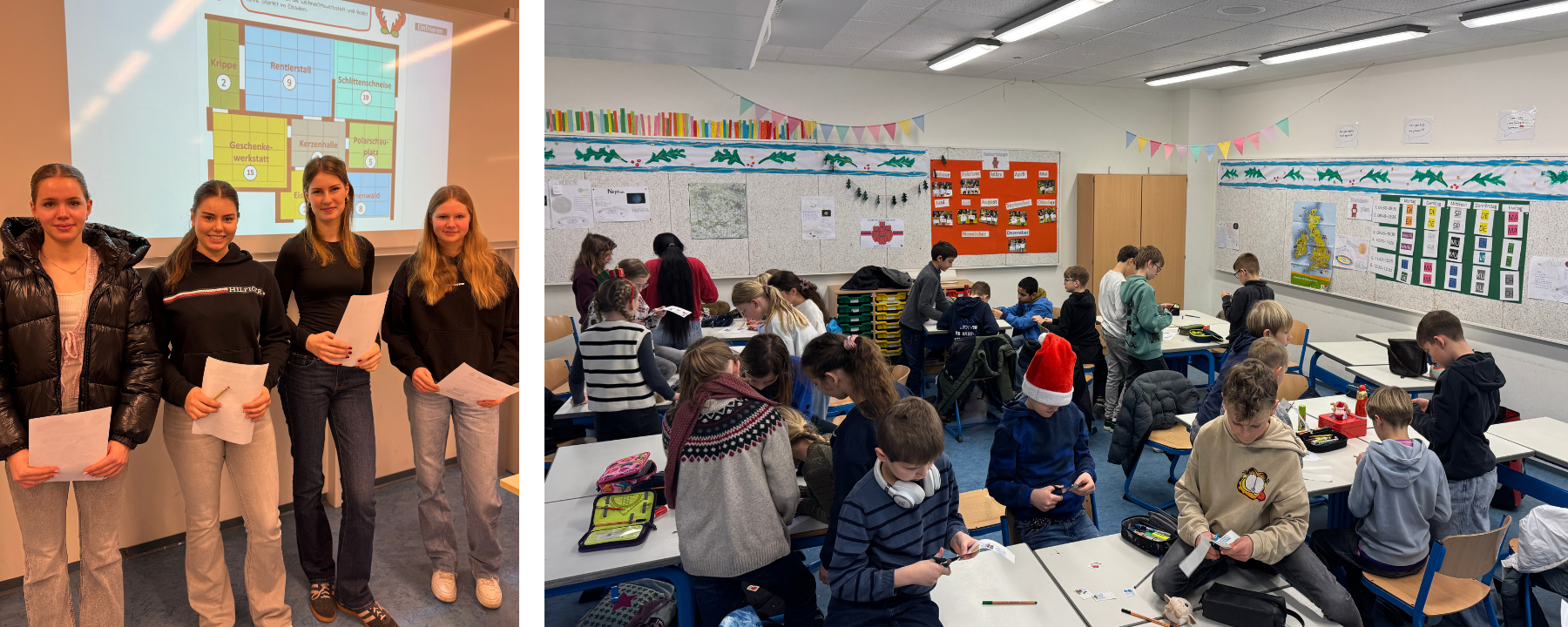 Der letzte Schultag vor den Ferien stand an der GAG ganz im Zeichen von Weihnachten. Der Vormittag begann traditionell mit der Aktion „Groß für Klein“, bei der Schüler*innen der Oberstufe die unteren Klassen besuchten, um dort weihnachtliche Stimmung zu verbreiten. Gemeinsam wurde gebastelt, gerätselt und gesungen – ein guter Auftakt für den Tag.