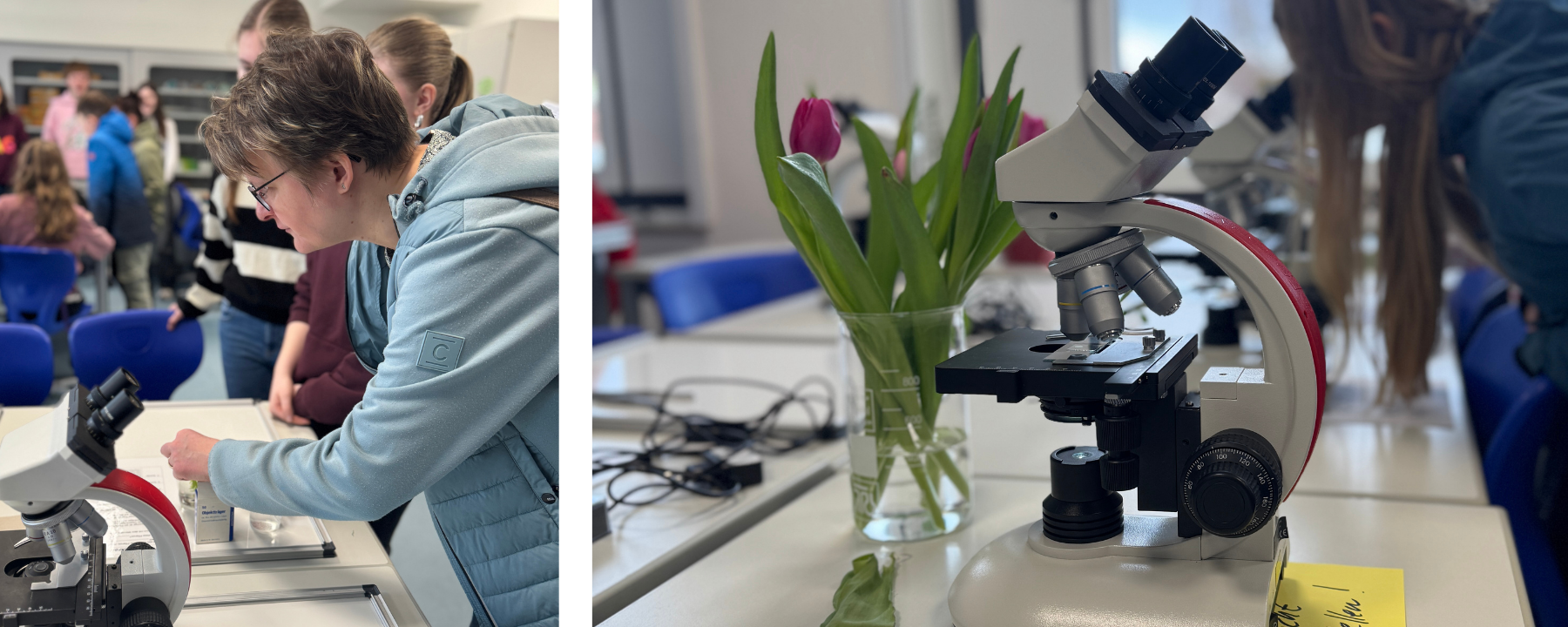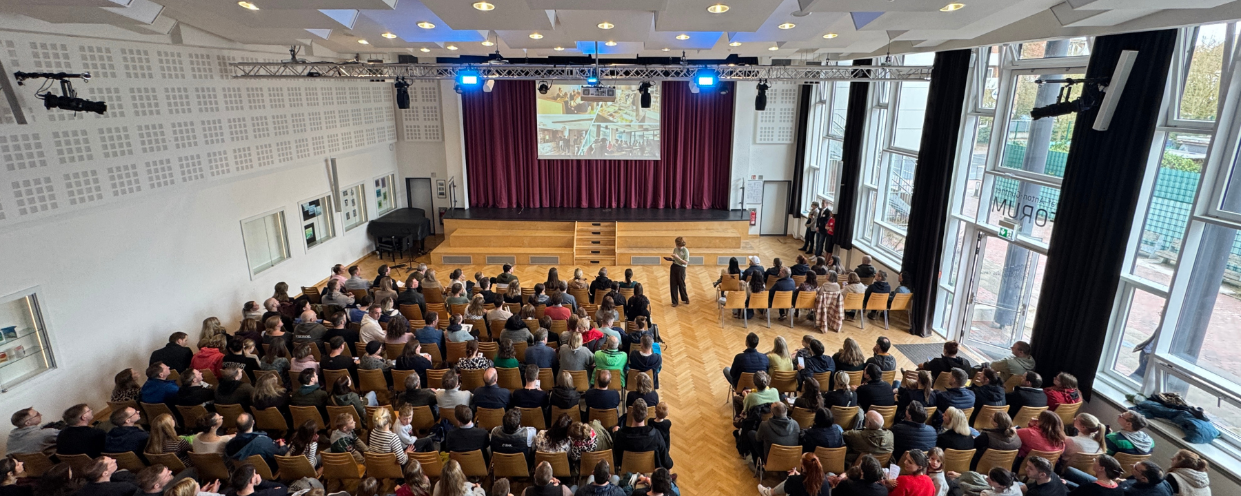 In den Fachräumen wurde geforscht, ausprobiert und gestaunt: Experimente in Chemie, Physik und Biologie luden zum Mitmachen ein, im Filmraum konnten die Besucherinnen und Besucher unseren Greenscreen kennenlernen, und auch die Kunst öffnete ihre Türen für kreative Aktionen. Die Informatik stellte unter anderem Robotik und 3D-Druck vor, während ein „internationaler“ Flur die sprachliche Vielfalt unserer Schule sichtbar machte. Darüber hinaus informierten wir über Austausch- und Förderprogramme, das Ganztagsangebot sowie die Schulsozialarbeit.