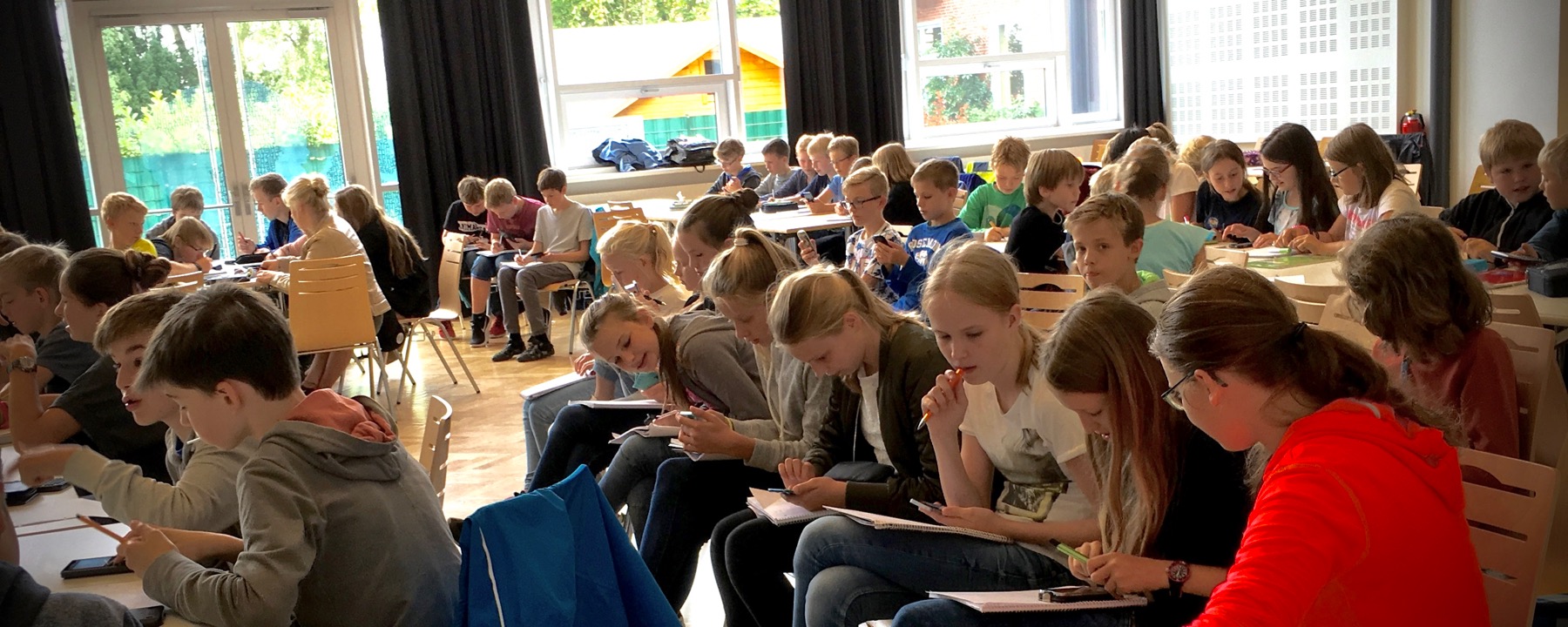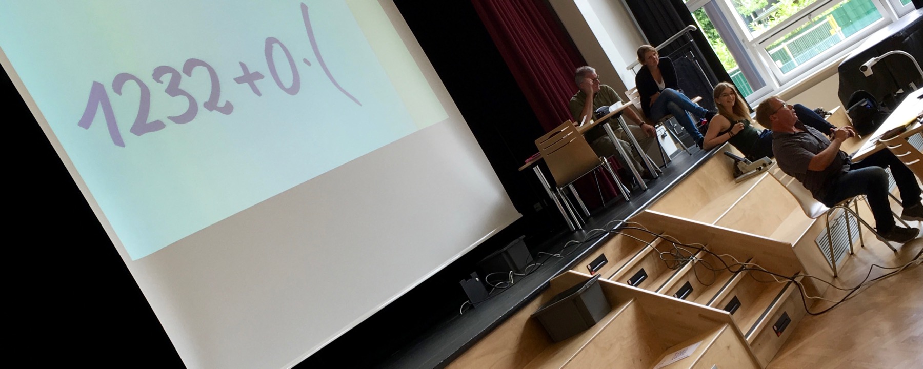 Aber damit ist der Zauber des Tages noch nicht einmal ansatzweise erfasst: Mit dem Kopf in einem blickdichten Eimer konnte Herr Strach die Summe von Zahlen, die Schüler willkürlich ausgewählt hatten, vorhersagen. Diese und viele, viele weitere mathemagische Verblüffungen konnten an diesem Tag an der GAG von 85 Schülern am 2.9.2016 aus nächster Nähe erlebt werden, nachdem die Schüler die Aufgaben der ersten Runde der Mathematikolympiade bearbeitet hatten.